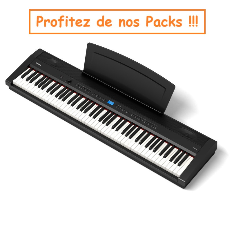 Caractéristiques : 88 touches NHA - Toucher lourd - 14 voies Preset Sound - Ecran lcd rétro éclairé bleu - réverb - effets midi - audio interface 48 khz 16 bit - Record 2 pistes 1 morceau - Transpose - Métronome - Sortie casque - Pédal in - 15w+15w 1 voix 2 HP - 13 kgs - Couleur: Noir ou Blanc